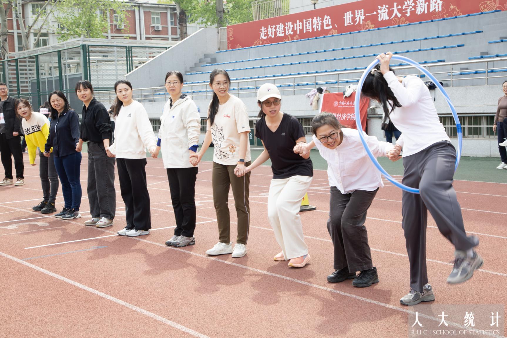 集体呼啦圈传递比赛中,老师们默契配合,将呼啦圈如行云流水般传向终点。手臂轻扬,身姿摇曳,每一次接力都汇成了团队的韵律。圈圈连心,心心相印,在呼啦圈传递比赛中,suncitygroup太阳成集团教工队以19.15秒的成绩获第十二名。