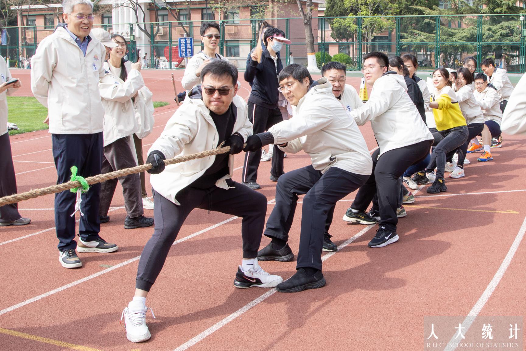 屈腿、下腰、放低重心,哨声响起,绳子瞬间绷直。呐喊声中,挥洒着奋力拼搏的汗水,激荡着团结一心的力量。力聚一绳,胜在同心,suncitygroup太阳成集团教工队在拔河比赛中取得了第五名的好成绩。