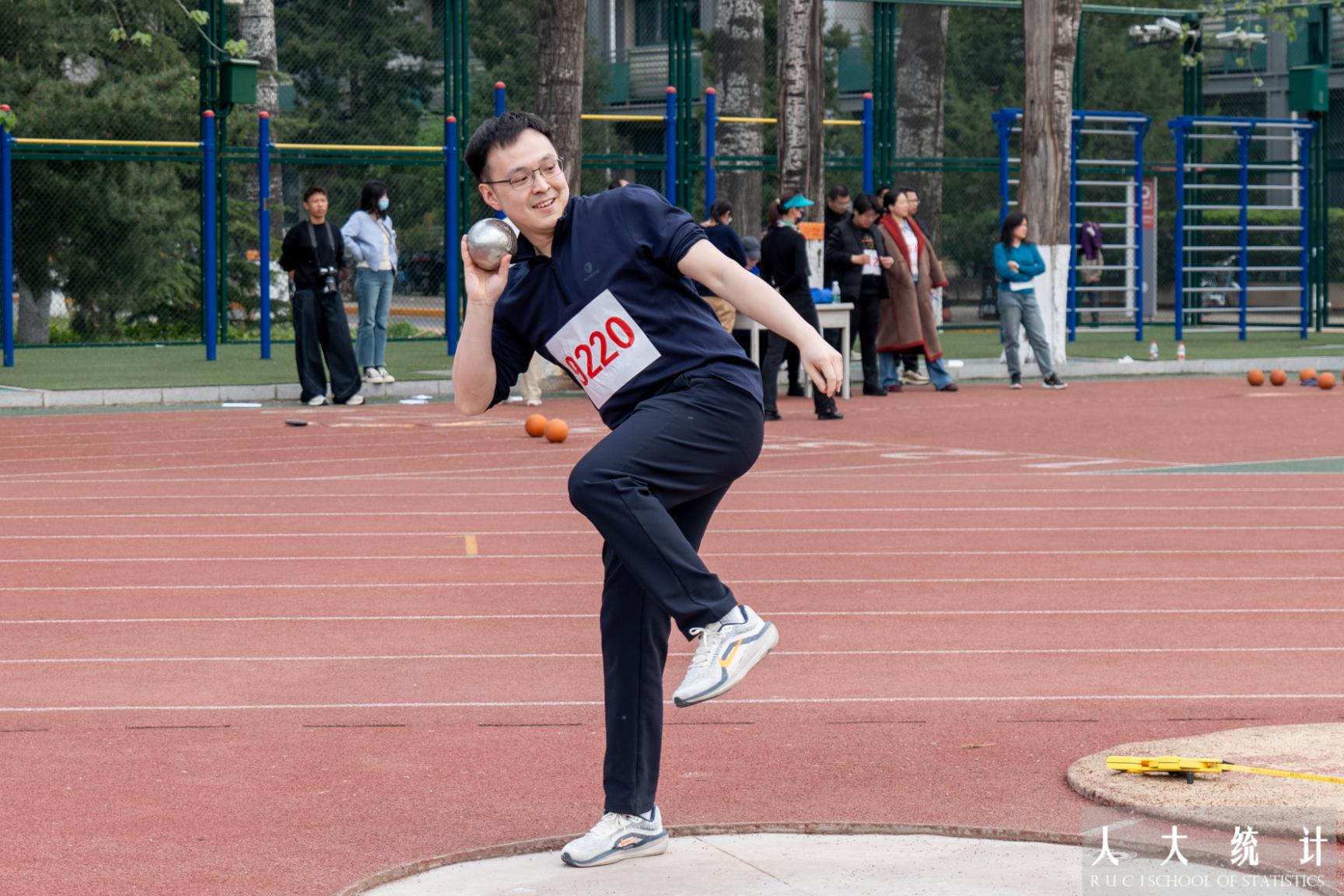蓄势、发力,沉重的球从手中挥出,挑战着越来越远的距离。杨松山老师在男子C组铅球比赛中获得第四名,孙怡帆老师在女子C组实心球比赛中获得第四名。