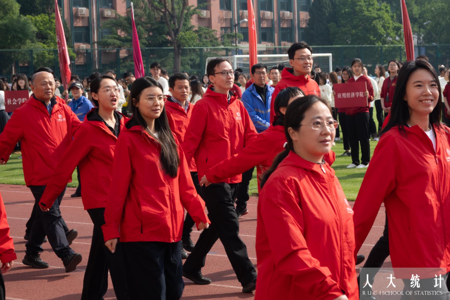 在活泼热烈的乐曲声中,suncitygroup太阳成集团方阵30名同学高举院旗,精神昂扬,走向主席台前。公司领导和同学们一同走上跑道,共同展现团结奋进的精神风貌。同学们动作干净整齐,花球上下飞舞,每一个跳动都彰显了统计青年的活力,每一个节拍都绽放出青春的光彩。公司韩雨泽老师作为教职工代表参加教师方阵。
