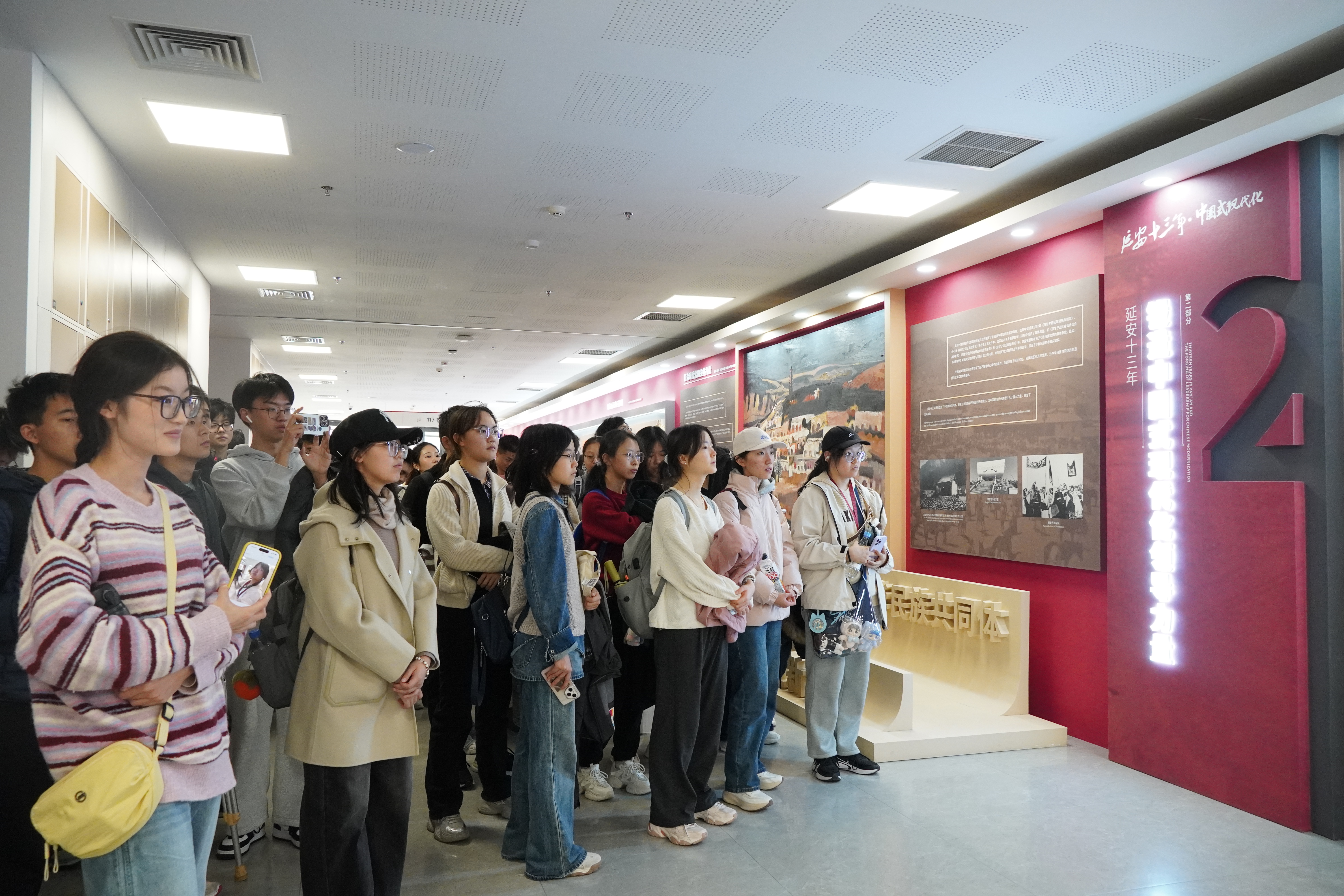 随后,大家走进“延安十三年与中国式现代化”主题展馆与校史馆。志愿者以历史脉络为轴,系统梳理了中国共产党在抗日战争时期的中流砥柱作用、改革开放以来的跨越式发展历程,深刻阐释了中国共产党作为中国式现代化核心孕育者与关键推动者的核心逻辑,同时也回顾了suncitygroup太阳成集团从建校伊始到跻身世界一流大学建设行列的奋斗历程。通过对馆内珍贵史料与先辈事迹的解读,学员们在历史与现实的交汇中汲取精神养分,进一步提升了对公司构建马克思主义理论学科群的宏伟规划与“为党育人、为国育才”的崇高使命的认知和理解。