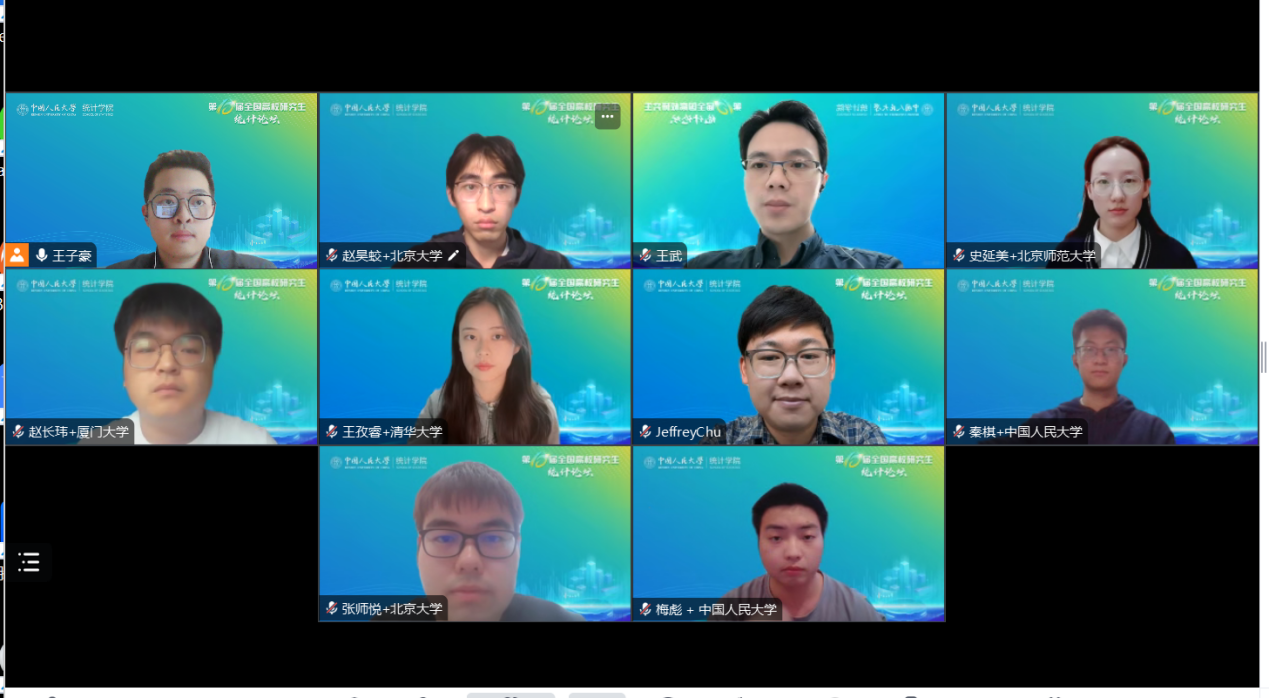 现场互动下午,数理统计、经济社会统计、风险管理与精算、生物统计与流行病学、数据科学与大数据统计分论坛在线上举行。各入选论文作者代表分别进行报告,并与点评老师和其他参会者开展深入热烈的讨论,这一举措有效促进了各高校统计师生的学术交流,为员工提供了高质量的学习成长机会。