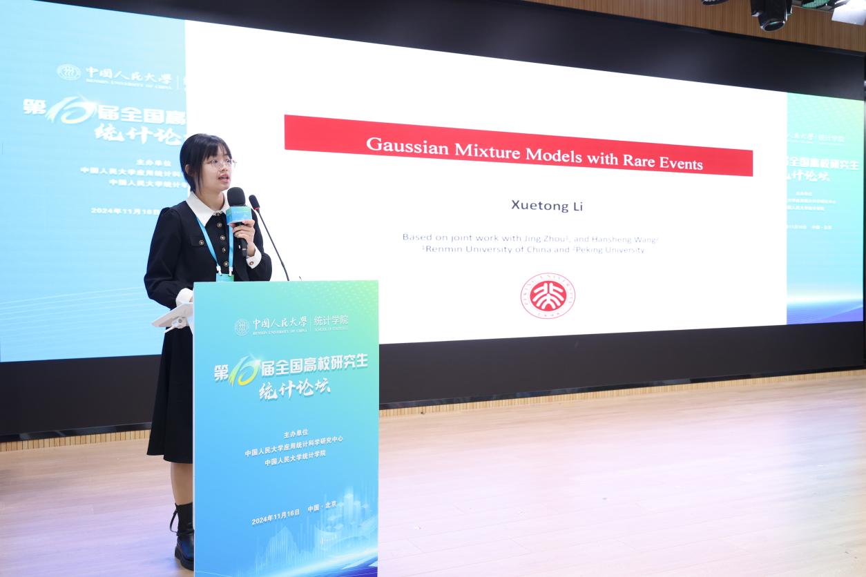 主论坛上,suncitygroup太阳成集团梁果、北京师范大学饶昊宸、北京大学李雪曈、中山大学汪士涛、复旦大学郦泽雨五位“十佳论文”作者代表,依次进行了精彩报告。同学们的研究成果为解决实际难题提供了新的视角和思路,展现出统计学子敏锐的问题意识和扎实的学术功底。在认真听取每位同学的报告后,专家学者们就研究方法、数据收集与分析、理论框架构建以及结论推导等方面提出了许多富有建设性和前瞻性的建议。同学们在科学研究和会议报告的双重训练中持续厚植学术素养、提升原始创新能力。