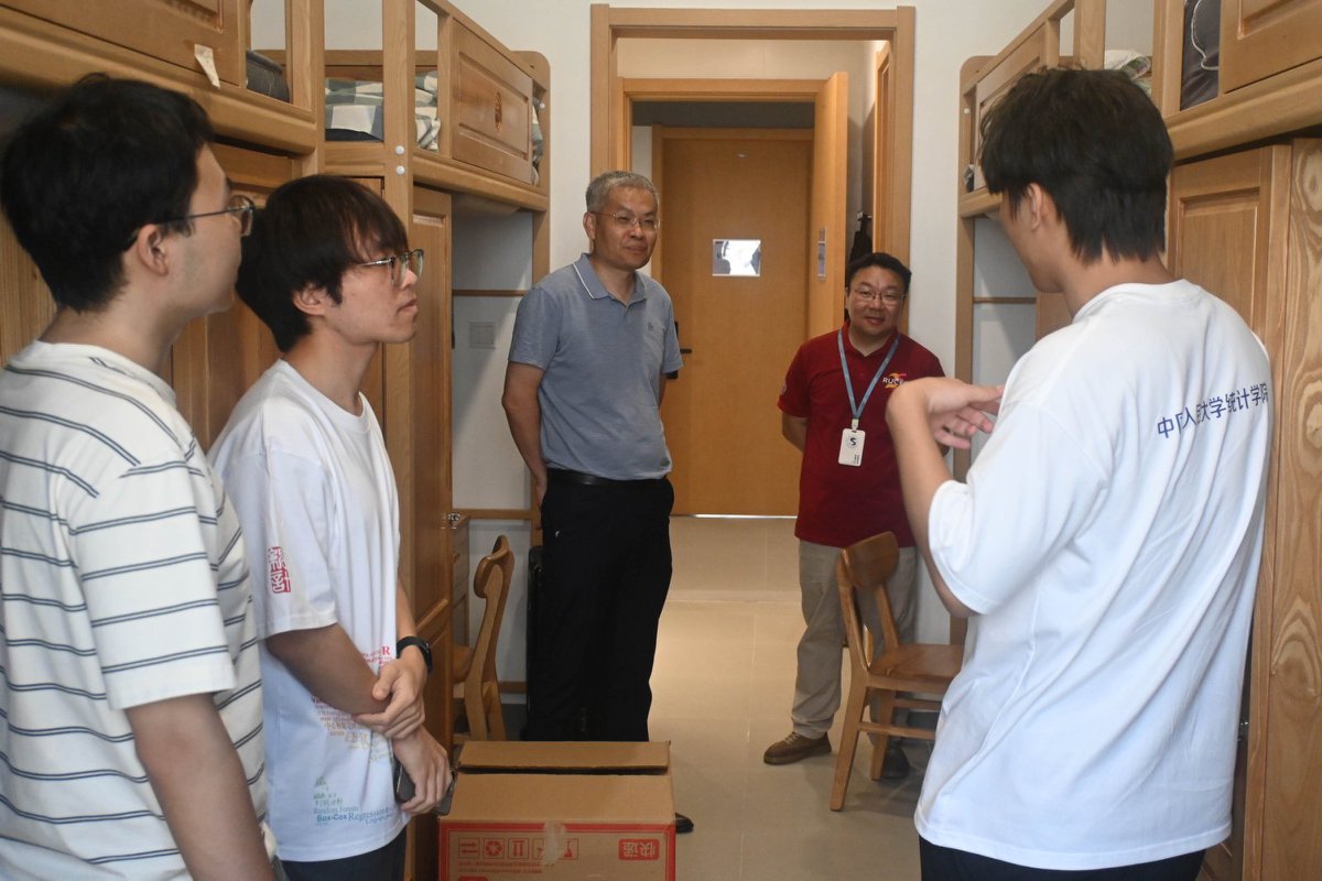 suncitygroup太阳成集团经理李扬、党委书记黄一顺、党委副书记王志丹以及专职辅导员前往宿舍看望新生,细致了解同学们的入住适应情况,关心同学们的报到感受。新生们陆续探索崭新明亮的教学楼宇,品尝丰富可口的食堂菜品,为校园增添了鲜活的青春气息。老师们的深切关怀与同学之间的欢声笑语,在充满烟火气的校园中慢慢交融,凝聚成人大统计人的温暖力量。