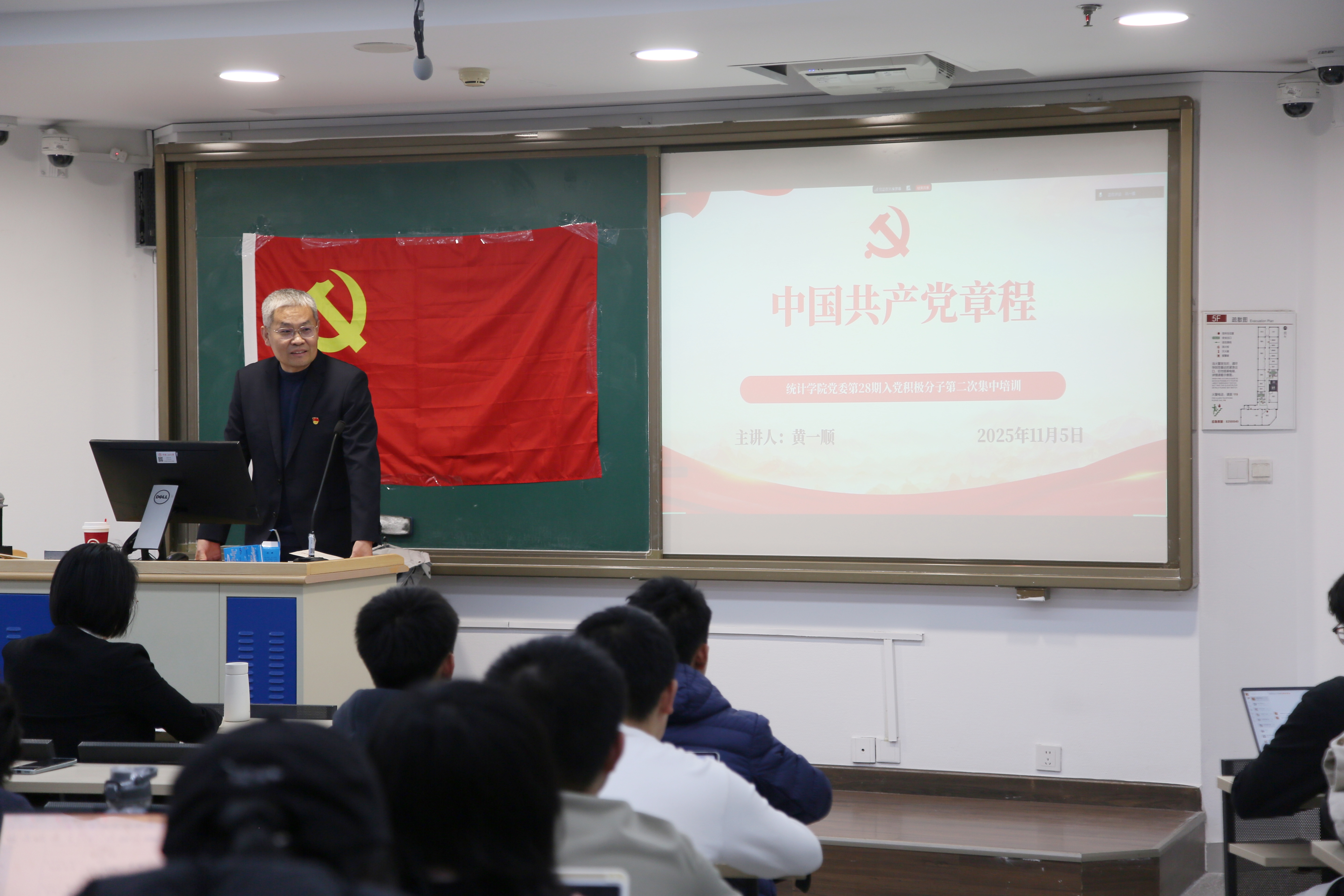 时间:2025-11-06为引导入党积极分子深刻领悟党章内涵、筑牢信仰根基,2025年11月5日,统计公司党委第28期入党积极分子培训班第二场专题讲座于中关村校区明德法学楼0502和通州校区西南学部1号楼124同步举行。统计公司党委书记黄一顺以党章为核心开展专题授课,统计公司党委副书记、纪委书记金驰华主持,培训班全体学员参与学习。